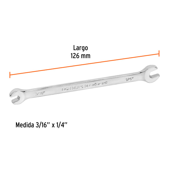 Llave española, 3/16 x 1/4' x 126 mm de largo, Truper Expert Caja con 6, 15678