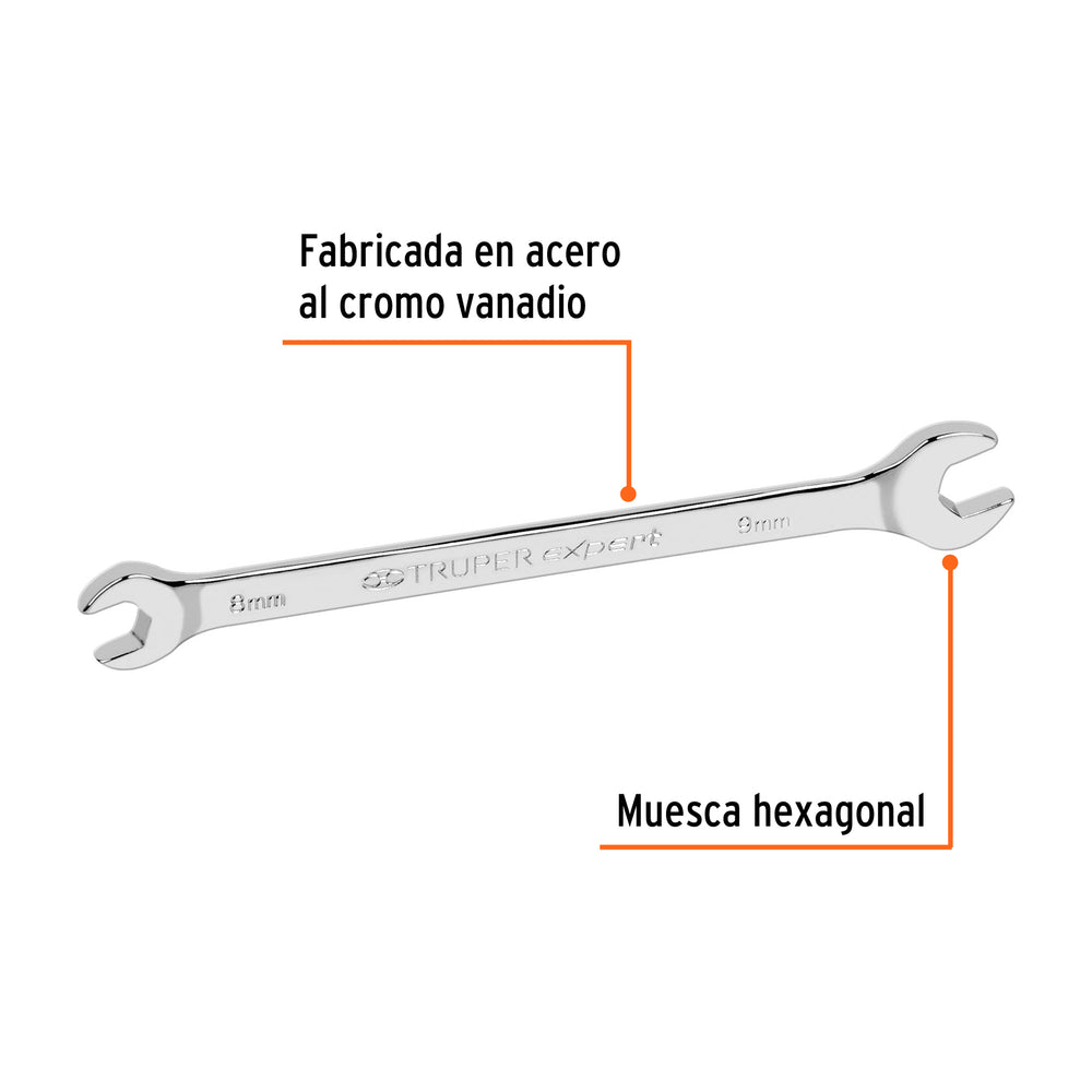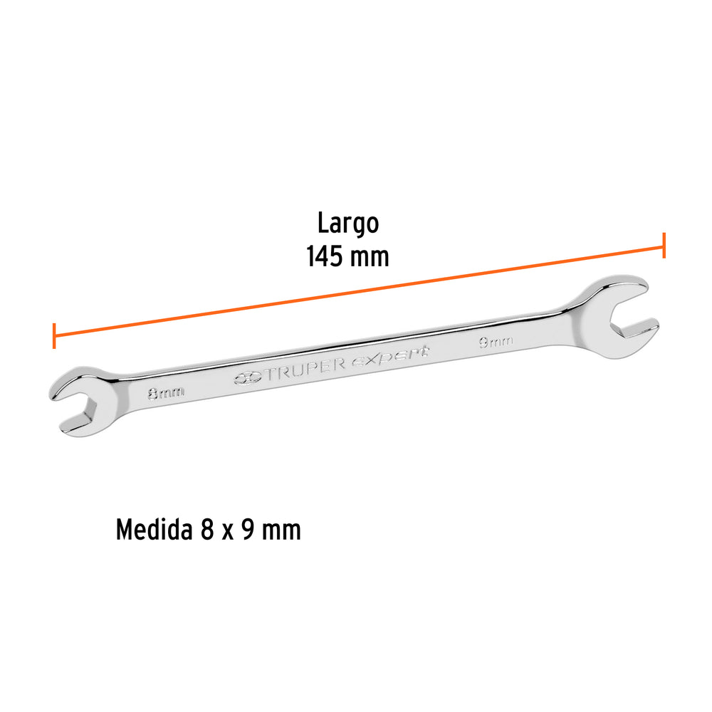 Llave española 8 x 9 mm x 145 mm de largo, Truper Expert Caja con 6, 15706