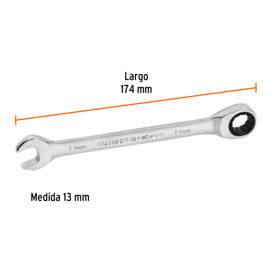 Llave combinada con matraca 13 mm x 174 mm largo, Expert Caja con 3, 15745