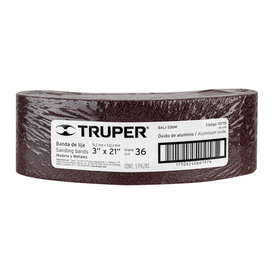 1 banda de lija 3 x 21' p/madera grano 36 en paquete de 5 Caja con 5, 15775
