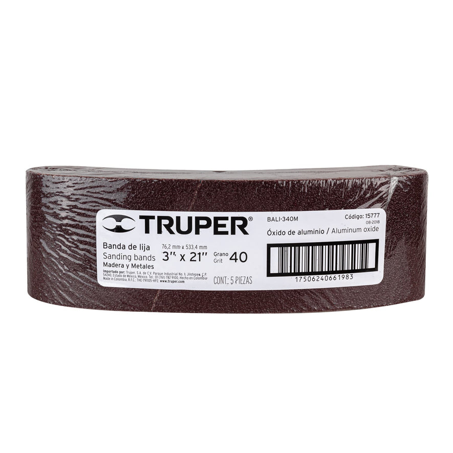 1 banda de lija 3 x 21' p/madera grano 40 en paquete de 5 Caja con 5, 15777