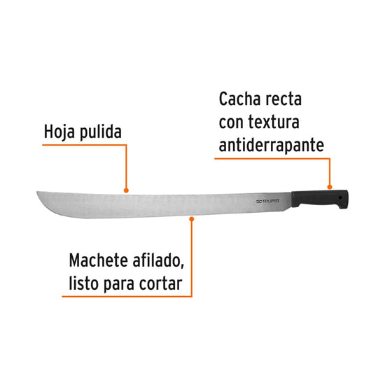 Machete estándar 24' cacha negra inyectada, Truper Caja con 4, 15868