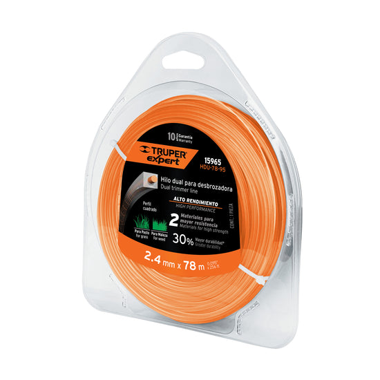 Hilo cuadrado dual p/desbrozadora, 2.4mm x78m,blíster EXPERT Caja con 4, 15965