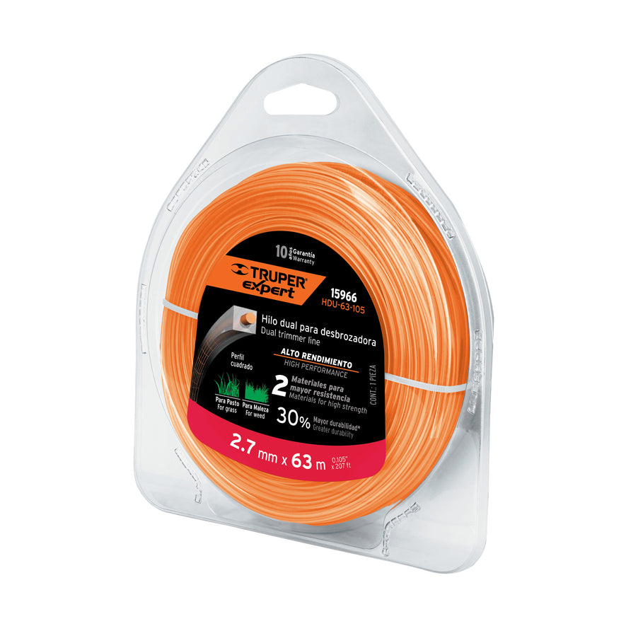 Hilo cuadrado dual p/desbrozadora,2.7mm x 63m,blíster EXPERT Caja con 4, 15966