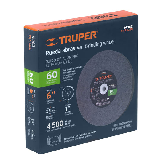 Rueda abrasiva p/esmeril 6 X 1', óxido de aluminio, grano 60 Caja con 6, 16382Rueda abrasiva p/esmeril 6 X 1', óxido de aluminio, grano 60 Caja con 6, 16382