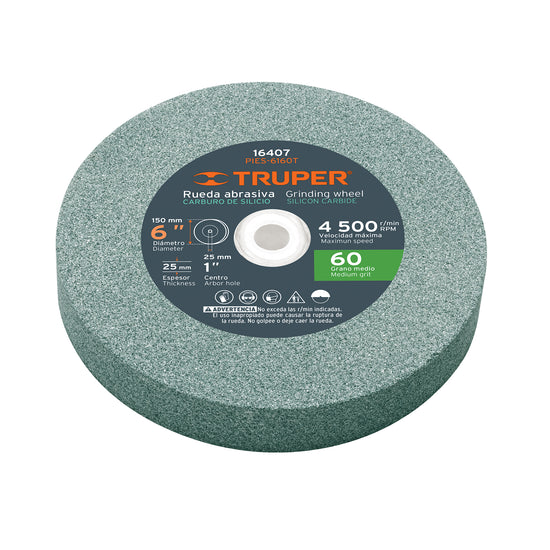 Piedra para esmeril 6 X 1', carburo de silicio, grano 60 Caja con 6, 16407