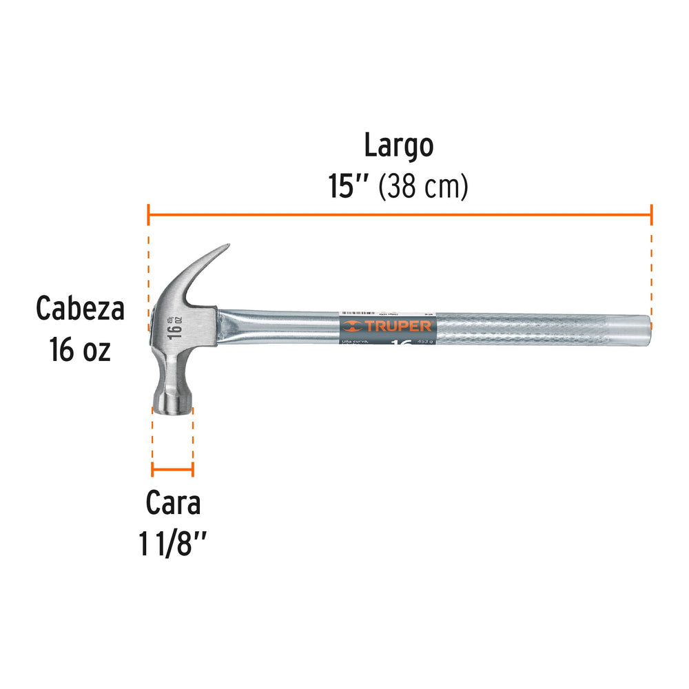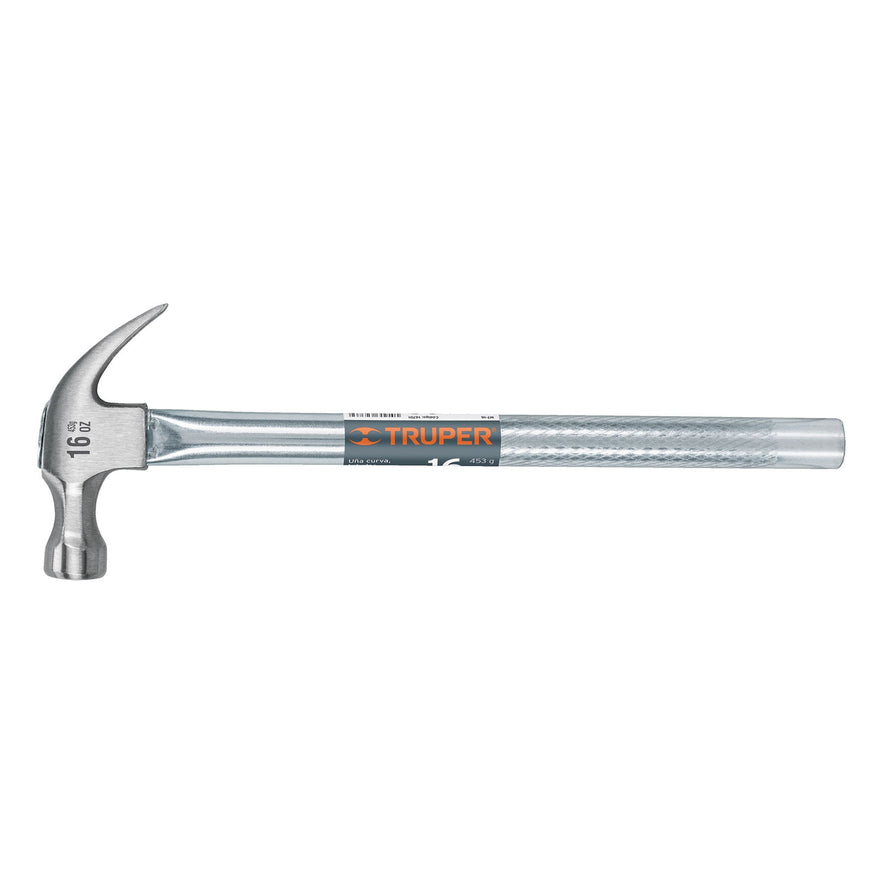 Martillo tubular pulido 16 oz uña curva, Truper Caja con 4, 16701