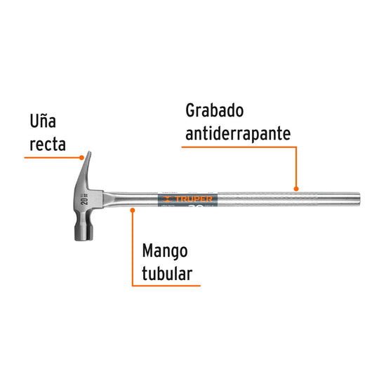 Martillo tubular pulido 20 oz uña recta, Truper Caja con 4, 16703