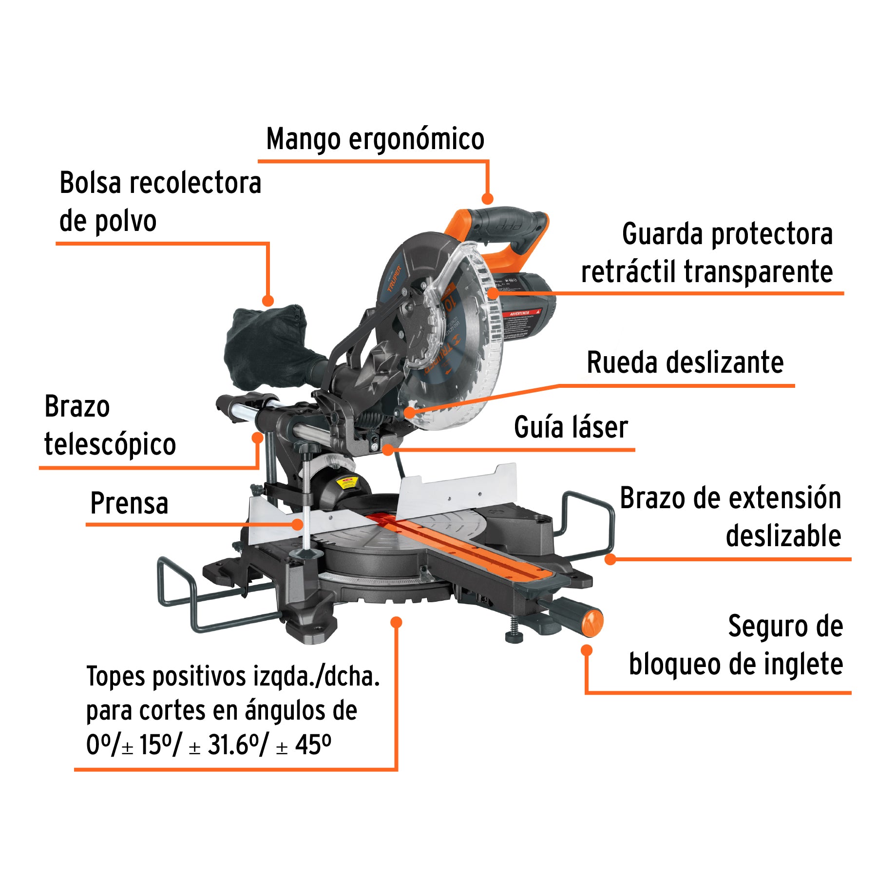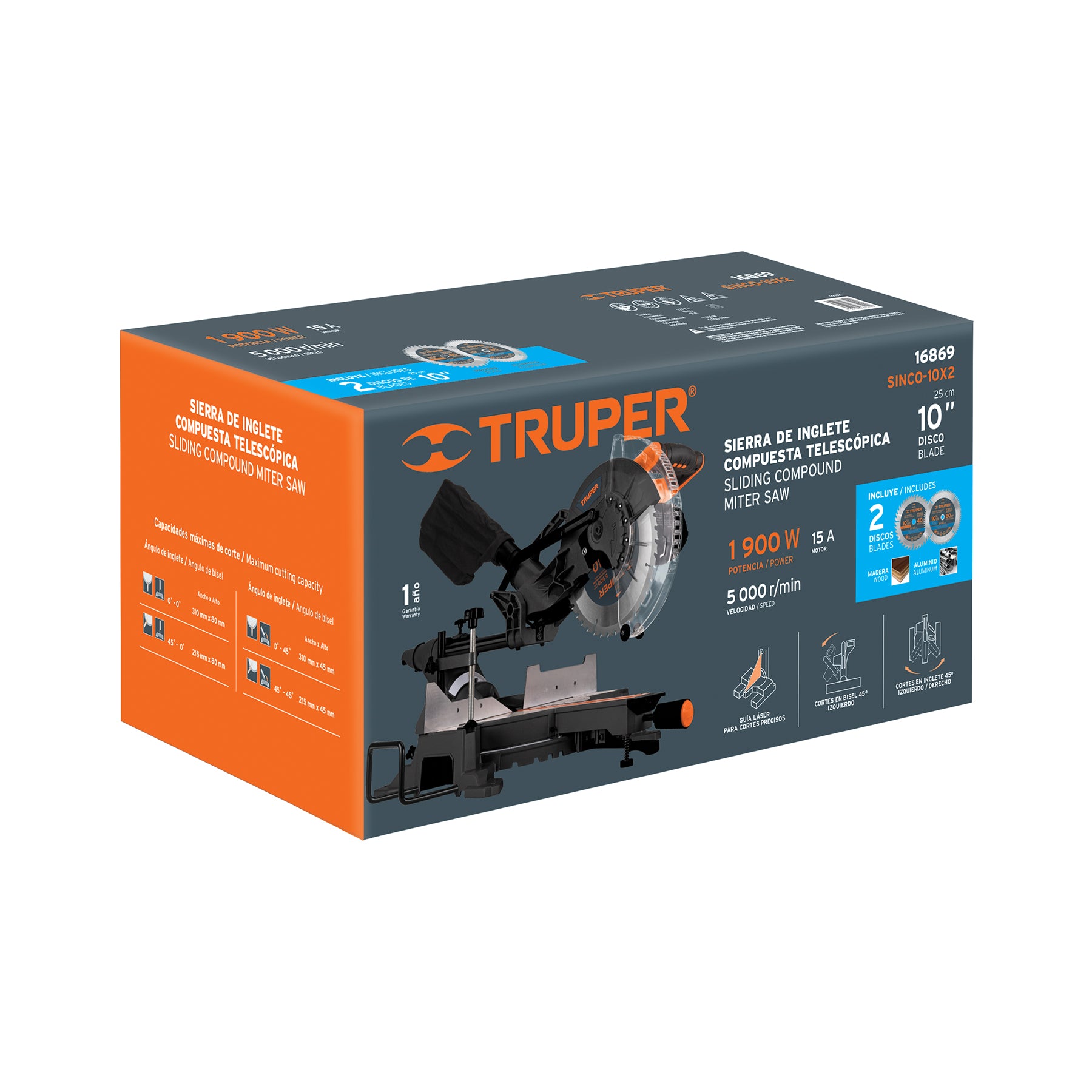 Sierra de inglete 10', 1900W telescópica compuesta, TRUPER, 16869