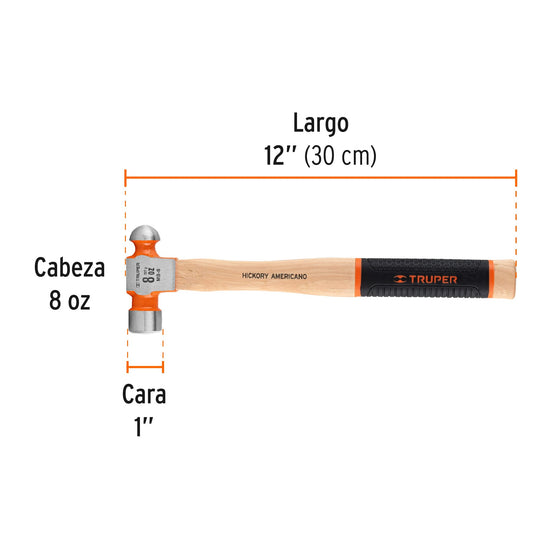 Martillo pulido de bola 8 oz mango hickory, Truper Grip Caja con 4, 16900