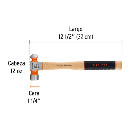 Martillo pulido de bola 12 oz mango hickory, Truper Grip Caja con 4, 16901Martillo pulido de bola 12 oz mango hickory, Truper Grip Caja con 4, 16901Martillo pulido de bola 12 oz mango hickory, Truper Grip Caja con 4, 16901
