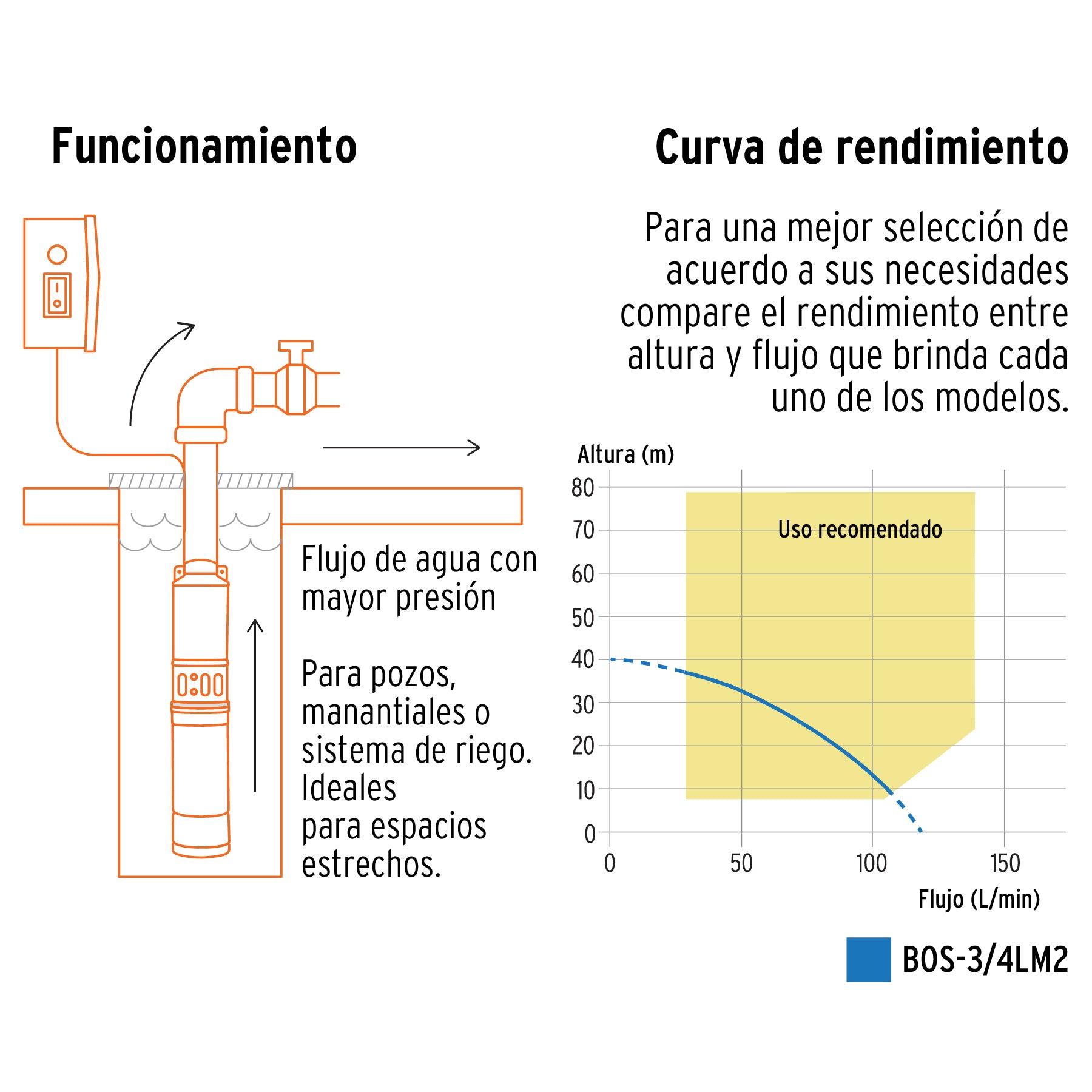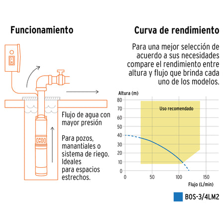 • Diseñada para trabajar con agua limpia como pueden ser bombeos de pozos y manantiales o en sistemas de riego