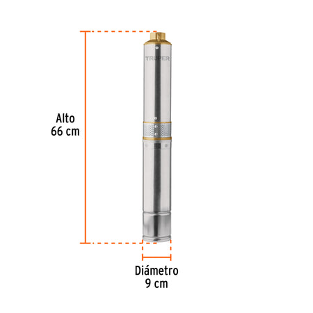 Bomba sumergible, tipo bala, 3/4 HP, agua limpia, Truper, 16934