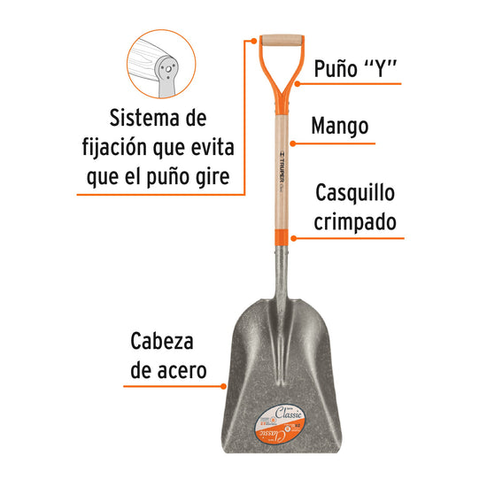 Pala carbonera Classic, puño 'Y', Truper Caja con 3, 17158