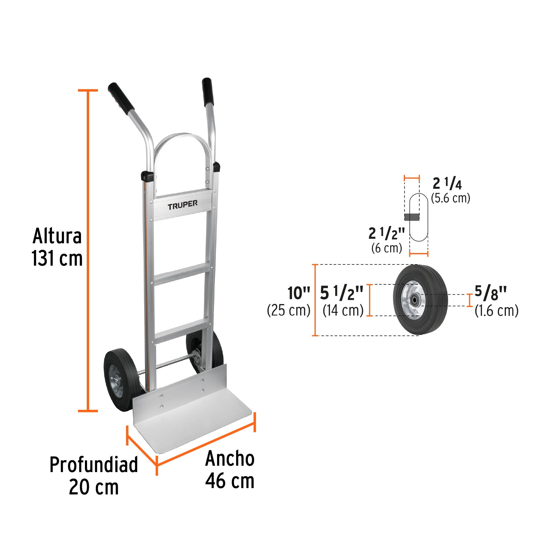 • Ruedas imponchables de hule sólido 10", gran resistencia al desgaste con suave rodamiento