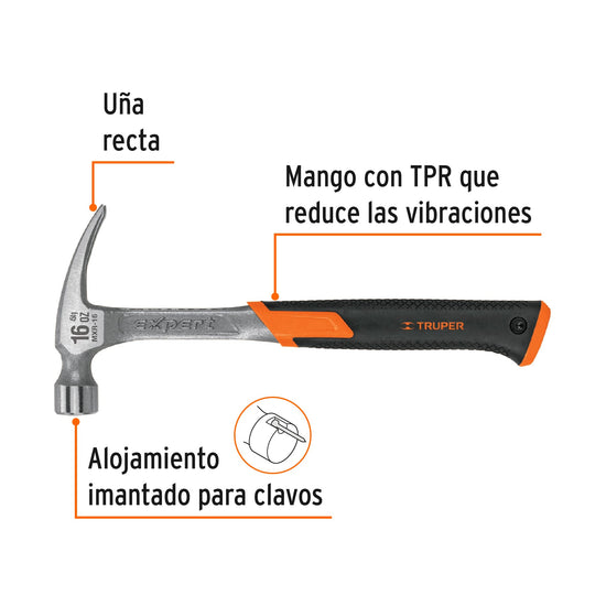 Martillo forjado 16 oz uña recta, mango con neopreno, Expert Caja con 4, 17857