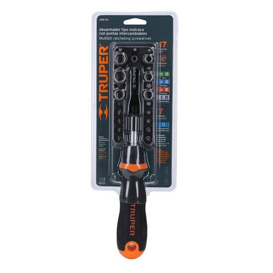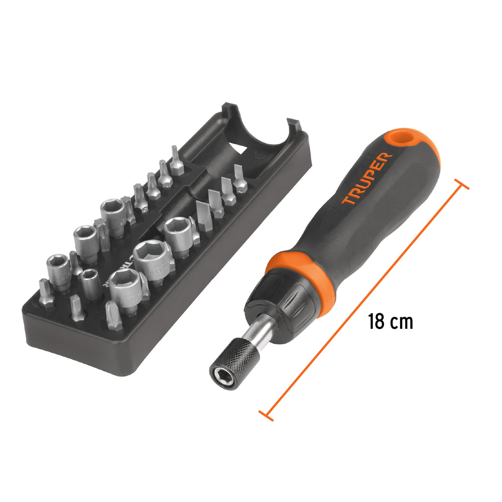 Desarmador tipo matraca con 17 puntas y 7 dados, Truper Caja con 3, 18222