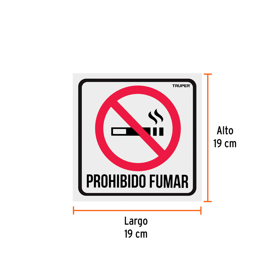 Letrero de señalización 'NO FUMAR', 19 x 19 cm, Truper Caja con 5, 18293
