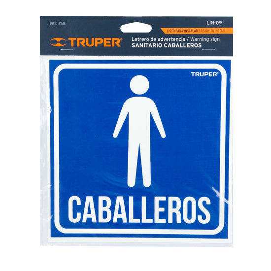 Letrero de señalización 'CABALLEROS', 19 x 19 cm, Truper Caja con 5, 18474