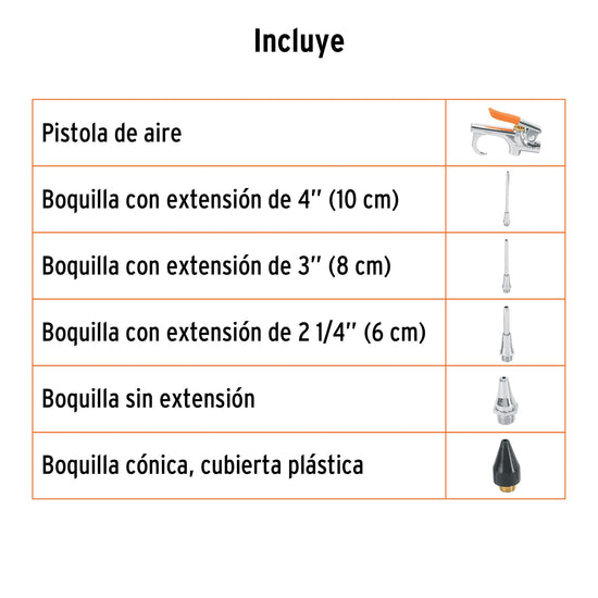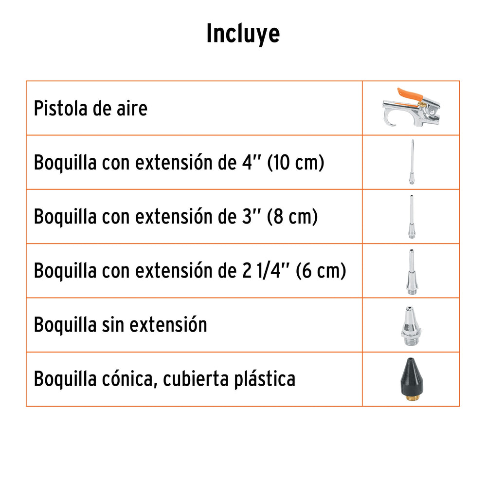 Juego de pistola y 5 boquillas para compresor de aire Caja con 6, 19077Juego de pistola y 5 boquillas para compresor de aire Caja con 6, 19077Juego de pistola y 5 boquillas para compresor de aire Caja con 6, 19077