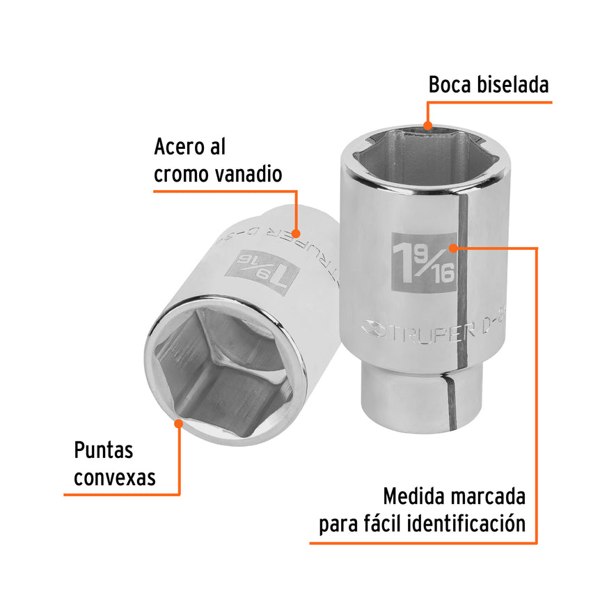 Dado largo de 1-9/16', 6 puntas, cuadro 3/4', Truper, 19348