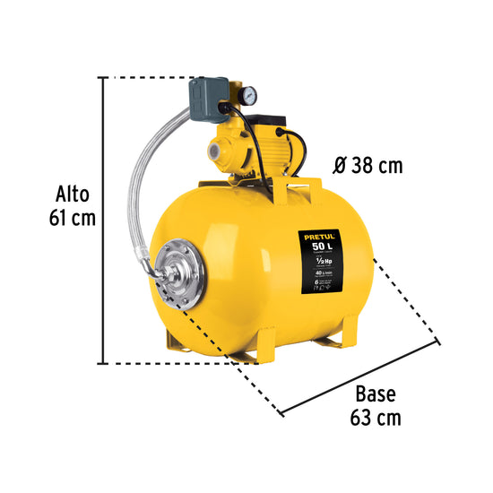 Equipo hidroneumático 50L, bomba periférica 1/2 HP, Pretul, 20184
