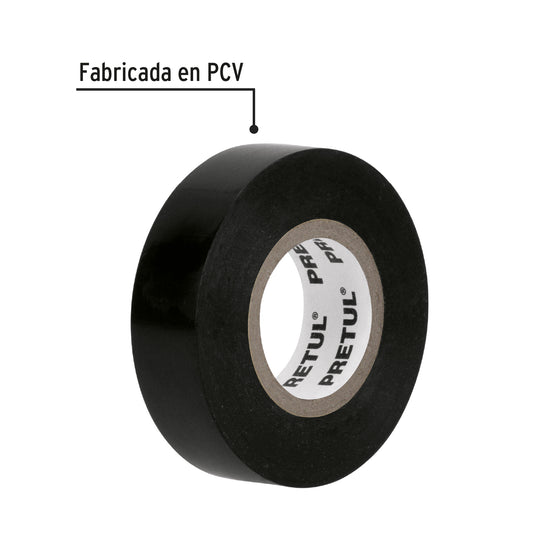 Cinta de aislar de 18 m x 19 mm, negra en blíster, Pretul Caja con 6, 20523