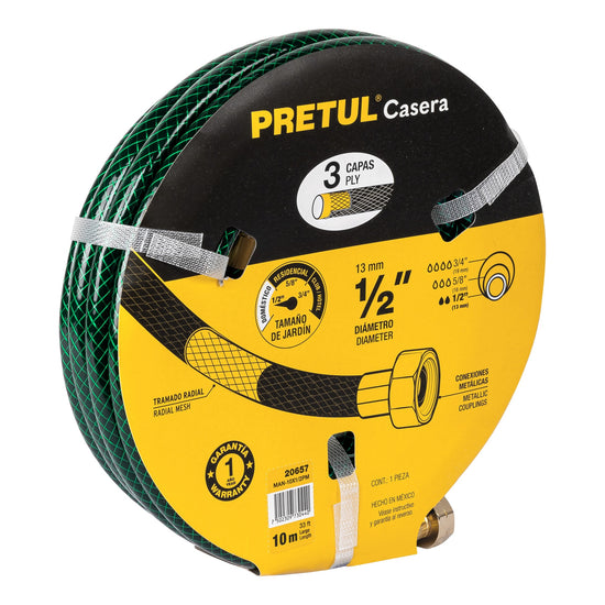 Manguera 1/2' reforzada 3 capas conexiones metal 10m, Pretul Caja con 6, 20657