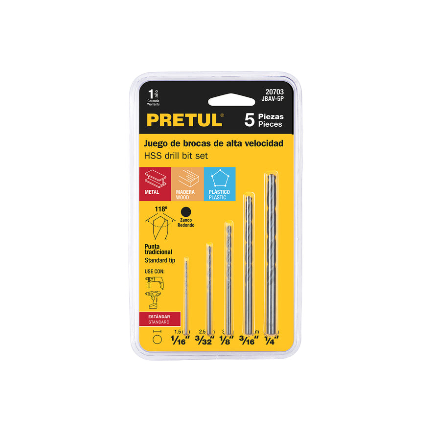 Juego de 5 brocas HSS para metal, Pretul Caja con 6, 20703