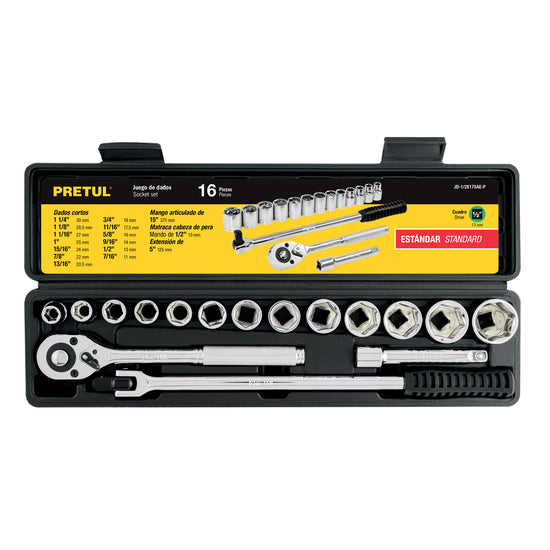 Juego de 16 herramientas 1/2' std para mecánico, Pretul, 21172