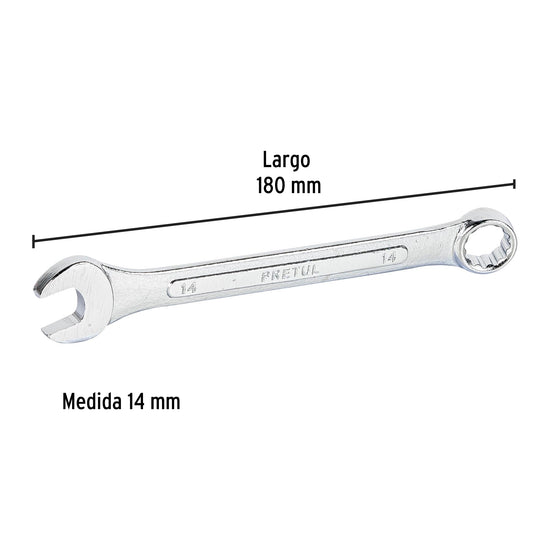 Llave combinada 14 mm x 180 mm de largo, Pretul Caja con 12, 21908
