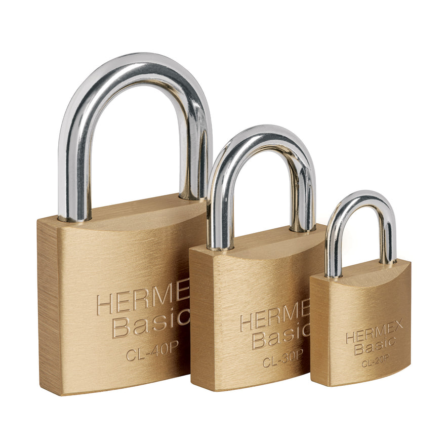 Candado de latón 30 mm gancho largo en blíster, Hermex Basic Caja con 6, 23516