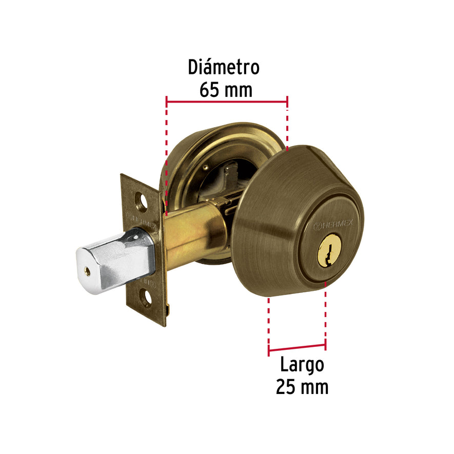 Cerrojo llave-llave latón antiguo, llave tradicional, Hermex Caja con 4, 23612