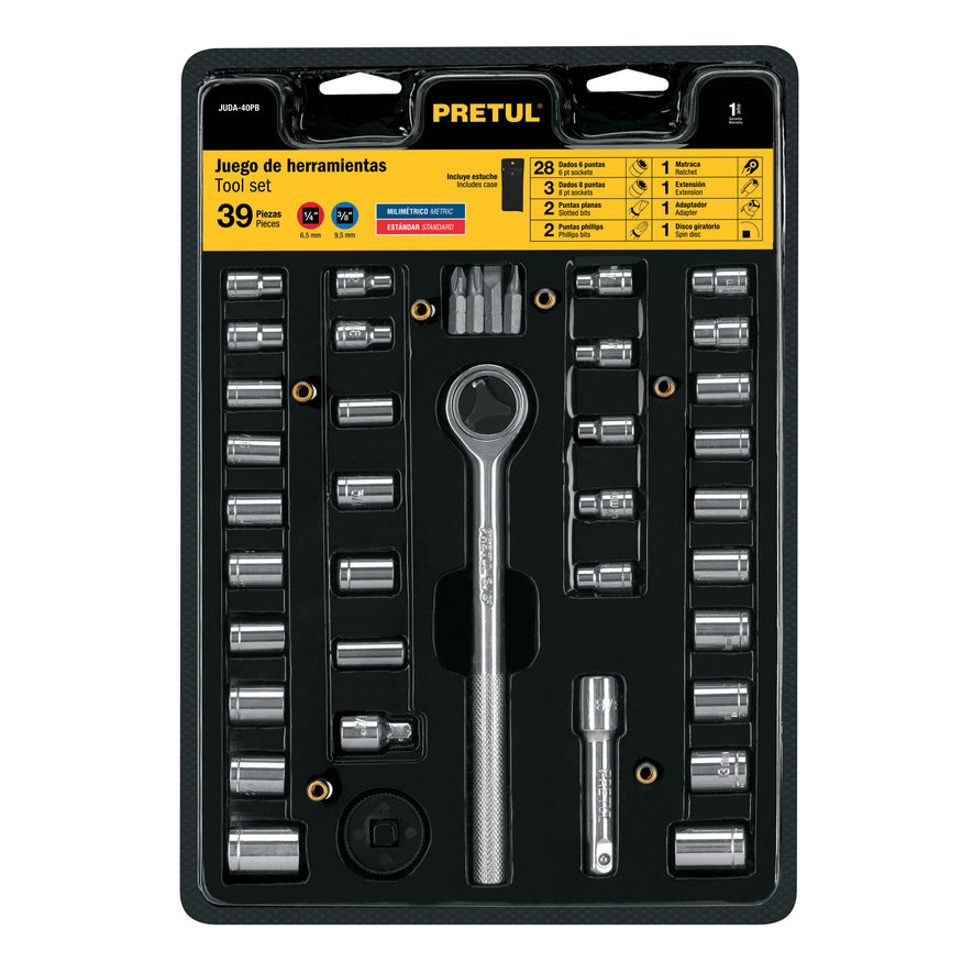 Juego de 39 herramientas 1/4' y 3/8' para mecánico, Pretul Caja con 2, 23973