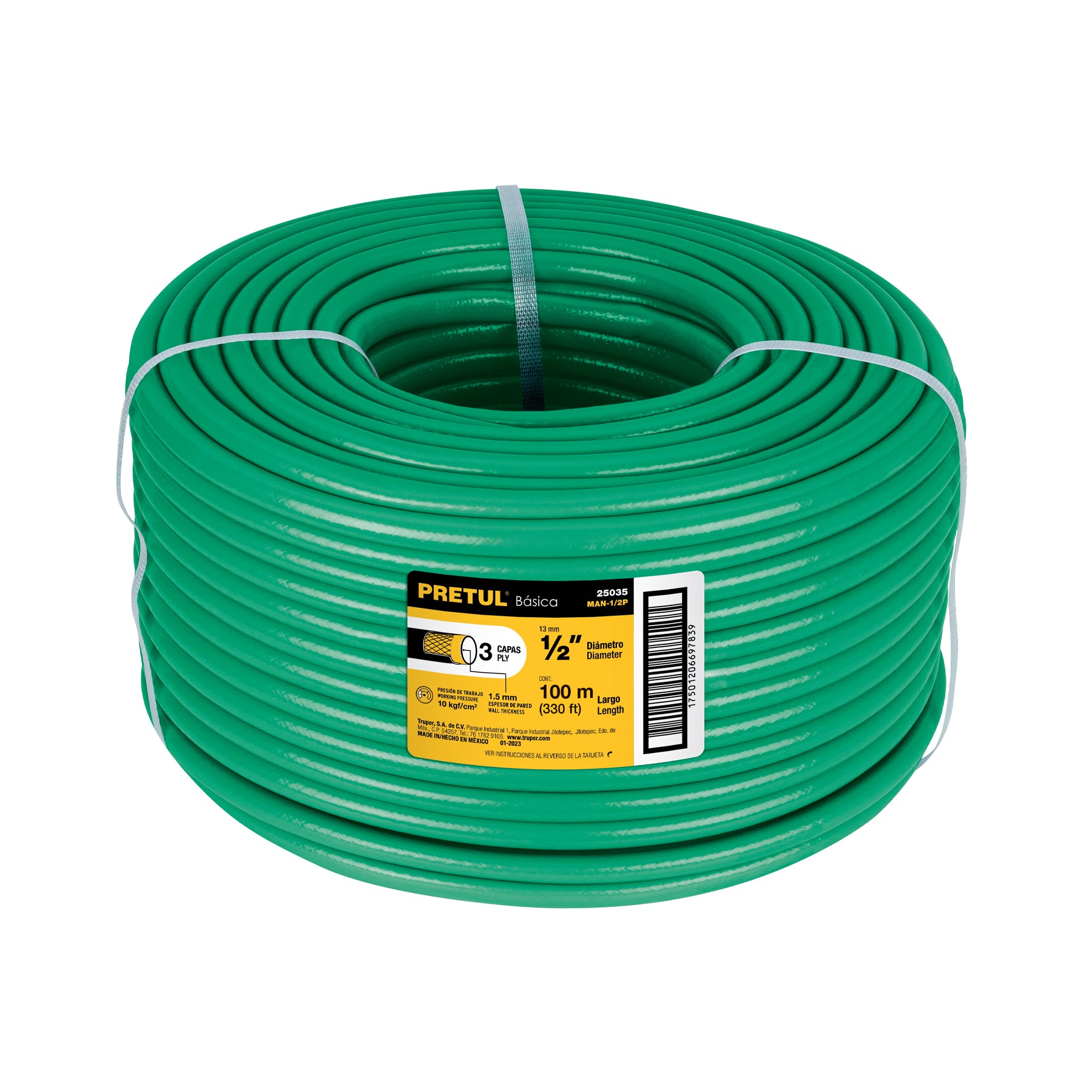 Metro de manguera 1/2' 3 capas en rollo de 100 m, PRETUL Caja con 100, 25035