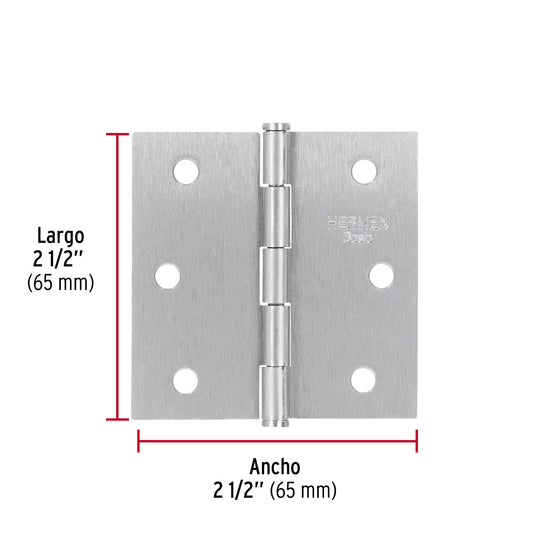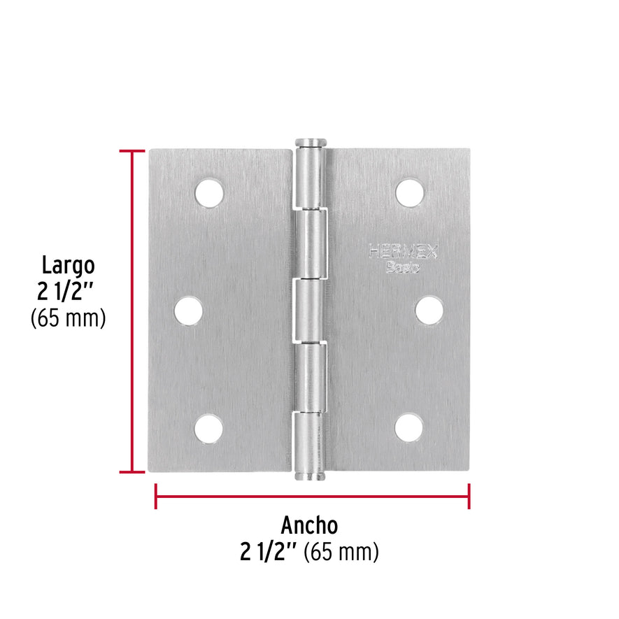 Bisagra cuadrada 2-1/2', satinado, cabeza plana, Basic Caja con 20, 25107