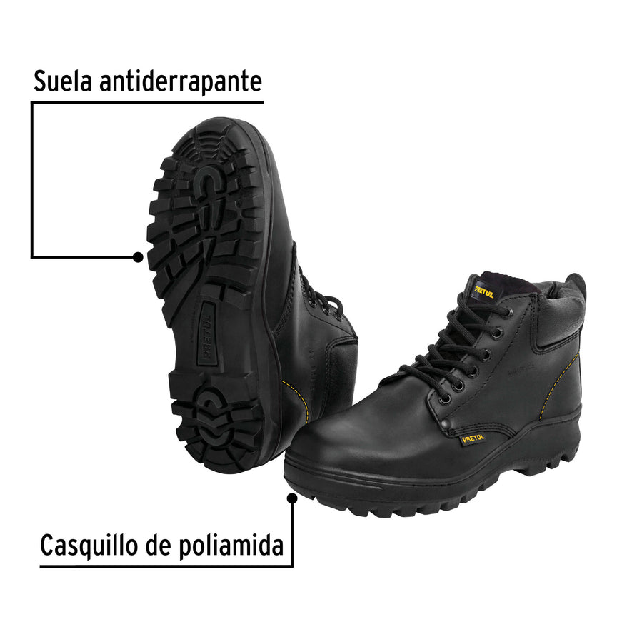 Bota de seguridad negra, #24, casquillo de poliamida, PRETUL, 26062