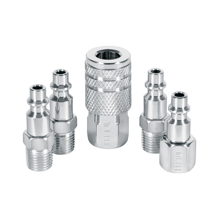 Juego de 4 conectores y 1 cople para compresor, Pretul Caja con 6, 27021