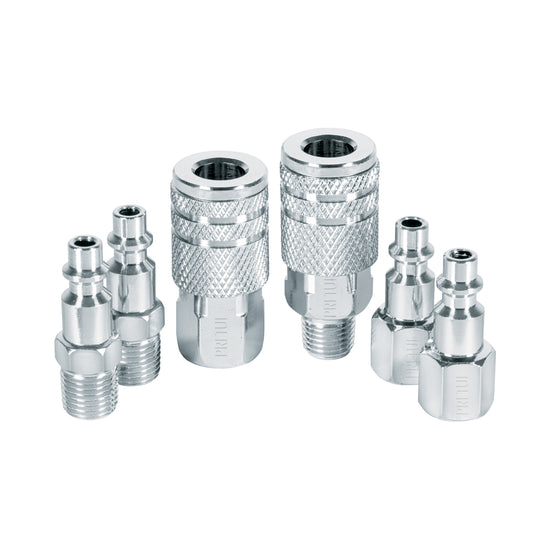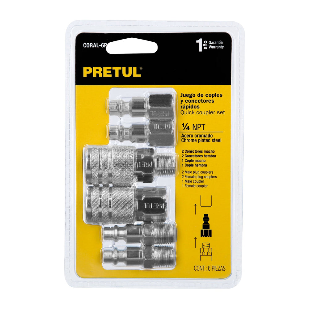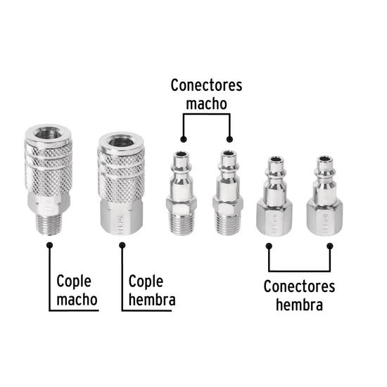 Juego de 4 conectores y 2 coples, compresor de aire, Pretul Caja con 6, 27030