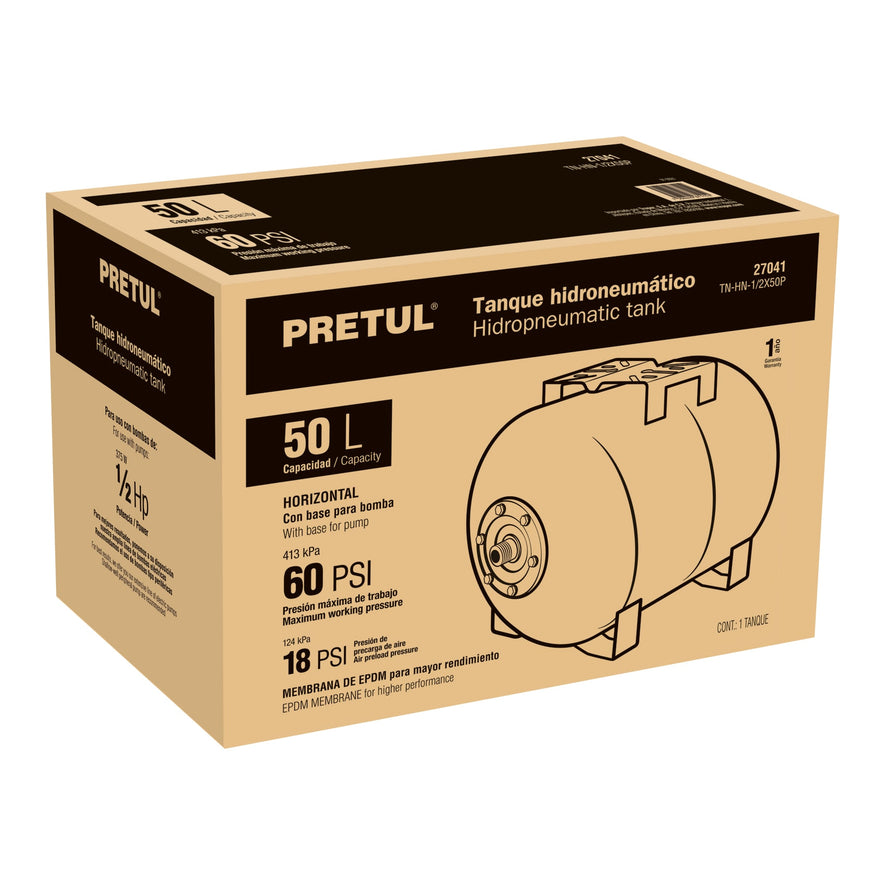 Tanque hidroneumático horizontal, 50 litros, Pretul, 27041