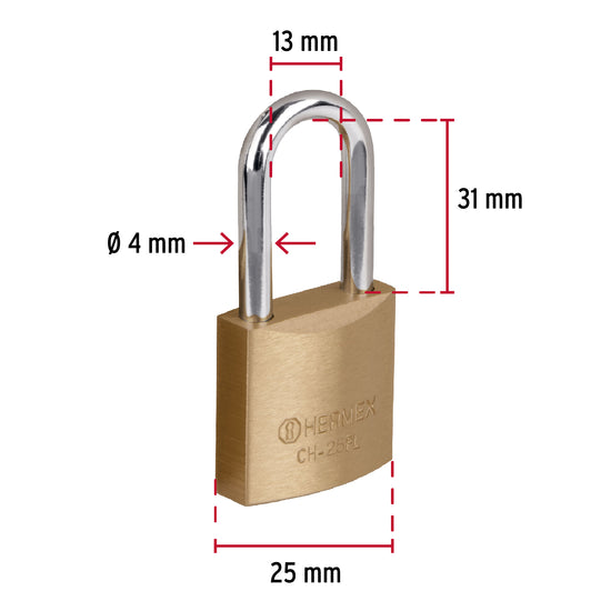 Candado de hierro color latón 25 mm, largo, blíster, BASIC Caja con 6, 27074