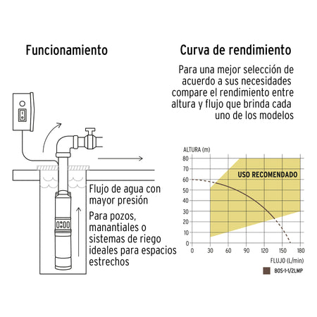 • Diseñada para trabajar con agua limpia como pueden ser bombeos de pozos y manantiales o en sistemas de riego