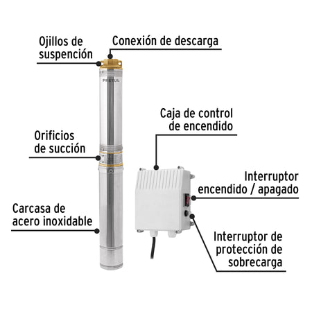Bomba sumergible, tipo bala, 1-1/2 HP, agua limpia, Pretul, 28202