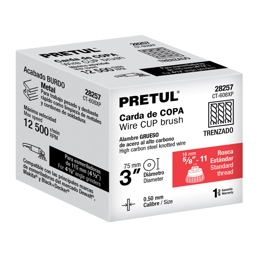 Carda copa 3' alambre trenzado grueso, eje 5/8'-11, Pretul Caja con 4, 28257Carda copa 3' alambre trenzado grueso, eje 5/8'-11, Pretul Caja con 4, 28257Carda copa 3' alambre trenzado grueso, eje 5/8'-11, Pretul Caja con 4, 28257