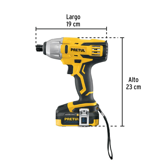 Destornillador de impacto inalámbrico 1/4', 20V, PRETUL, 28269