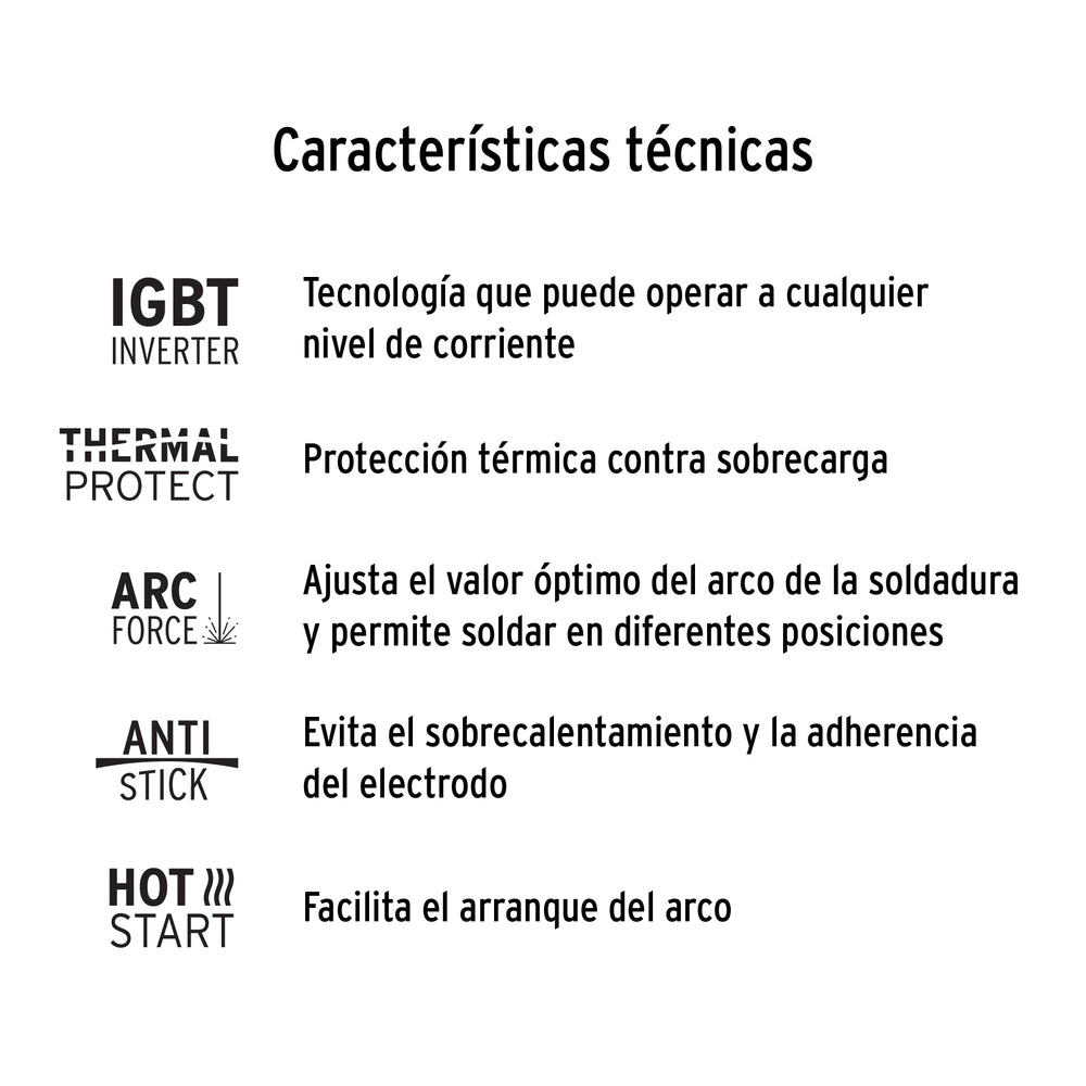 Ligera, compacta y fácil de transportar, más eficiente (mayor ciclo de trabajo) y con menor consumo eléctrico que una soldadora convencional