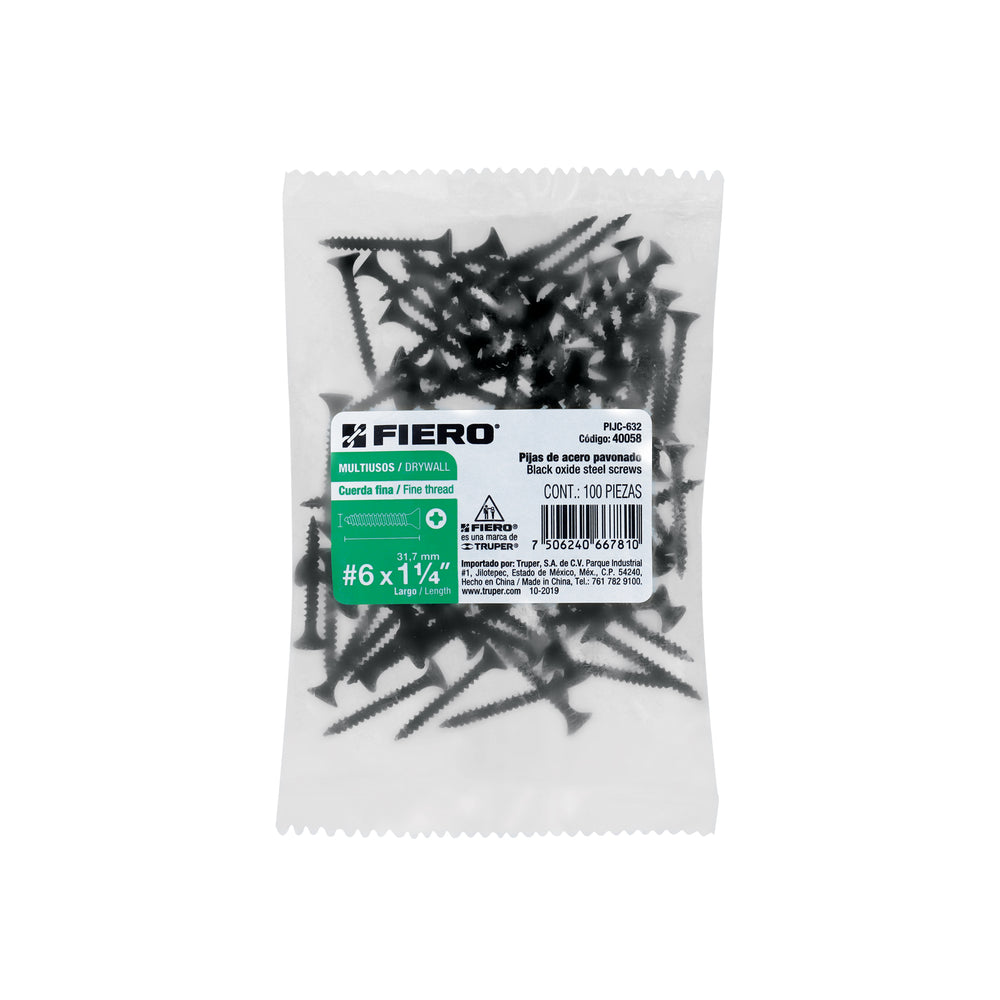 Bolsa con 100 pijas #6 x 1-1/4' multiusos cuerda fina, Fiero Caja con 6, 40058Bolsa con 100 pijas #6 x 1-1/4' multiusos cuerda fina, Fiero Caja con 6, 40058Bolsa con 100 pijas #6 x 1-1/4' multiusos cuerda fina, Fiero Caja con 6, 40058