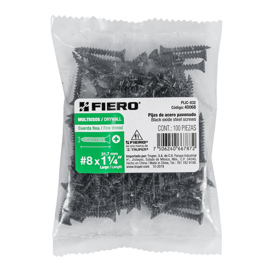 Bolsa con 100 pijas #8 x 1-1/4' multiusos cuerda fina, Fiero Caja con 6, 40068Bolsa con 100 pijas #8 x 1-1/4' multiusos cuerda fina, Fiero Caja con 6, 40068Bolsa con 100 pijas #8 x 1-1/4' multiusos cuerda fina, Fiero Caja con 6, 40068