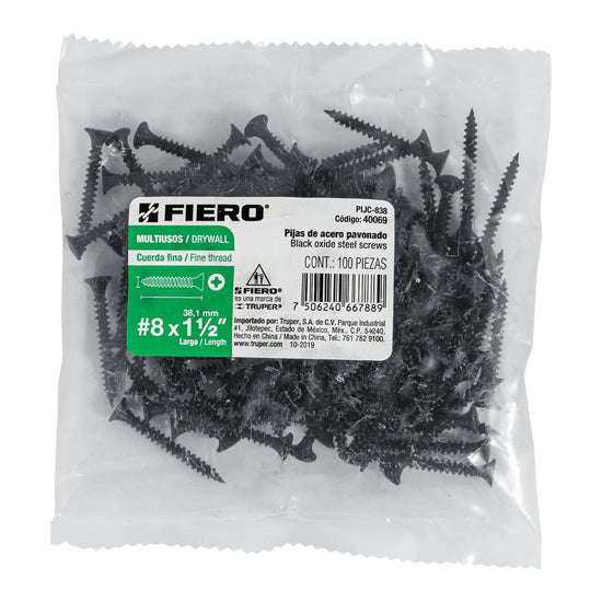 Bolsa con 100 pijas #8 x 1-1/2' multiusos cuerda fina, Fiero Caja con 6, 40069Bolsa con 100 pijas #8 x 1-1/2' multiusos cuerda fina, Fiero Caja con 6, 40069Bolsa con 100 pijas #8 x 1-1/2' multiusos cuerda fina, Fiero Caja con 6, 40069