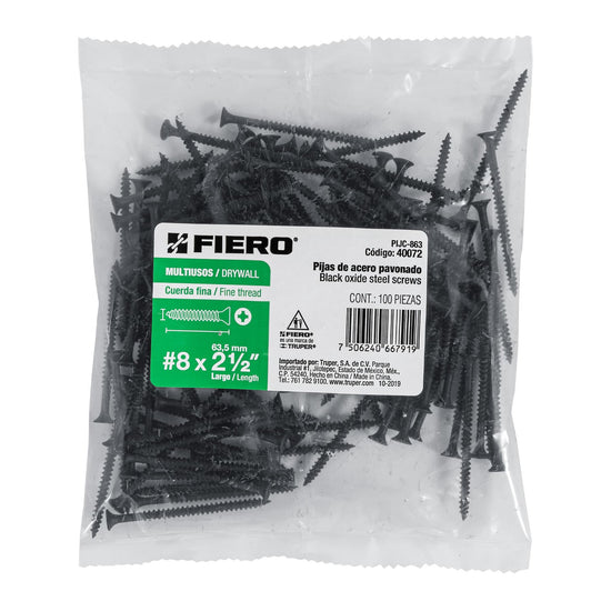 Bolsa con 100 pijas #8 x 2-1/2' multiusos cuerda fina, Fiero Caja con 6, 40072Bolsa con 100 pijas #8 x 2-1/2' multiusos cuerda fina, Fiero Caja con 6, 40072Bolsa con 100 pijas #8 x 2-1/2' multiusos cuerda fina, Fiero Caja con 6, 40072